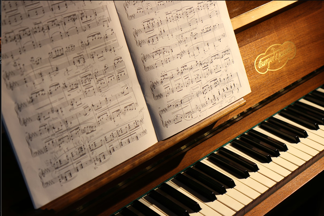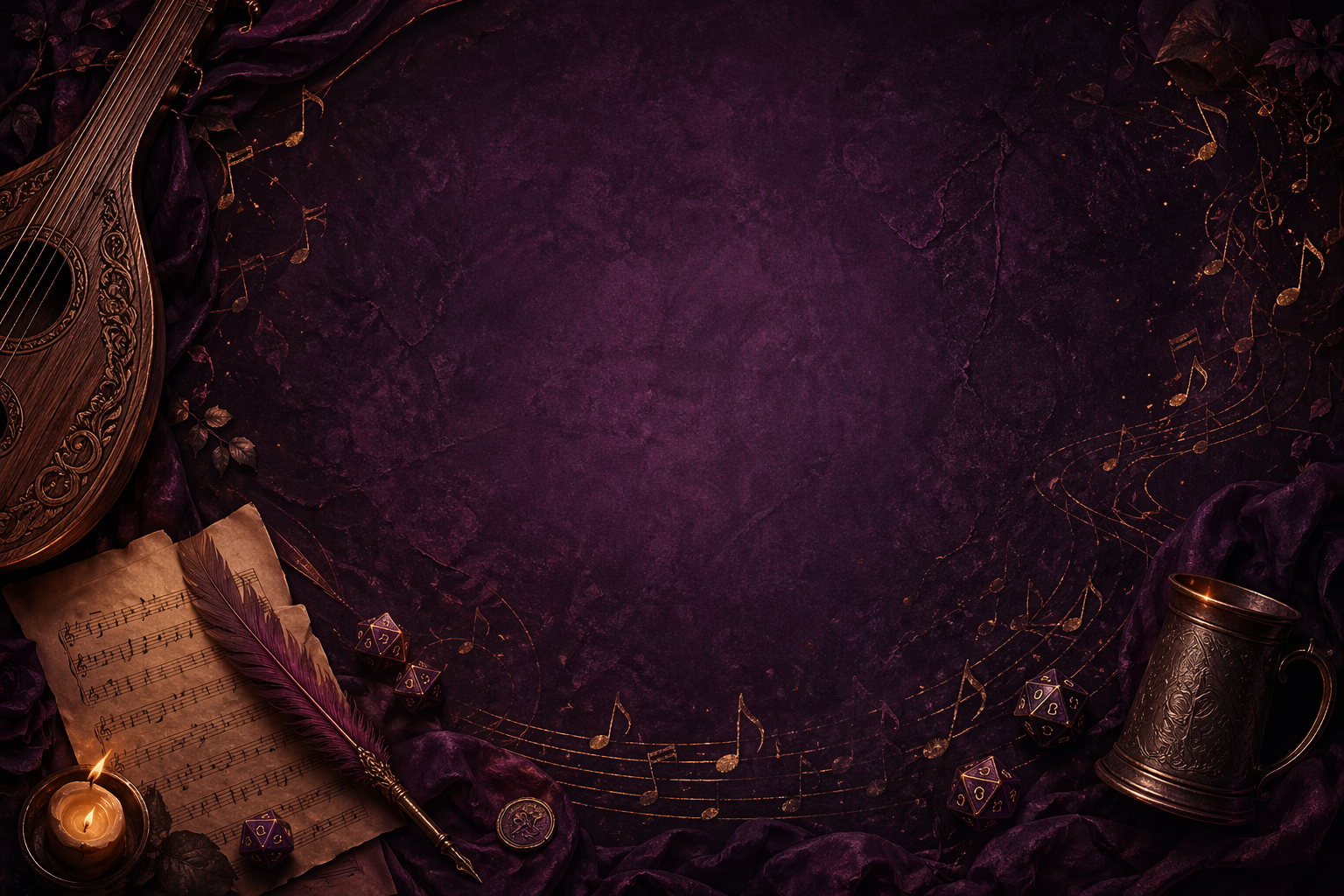 Voor de bard mag het best een beetje bewegen. Daarom zweven deze dobbelstenen subtiel mee op de muzieknoten.